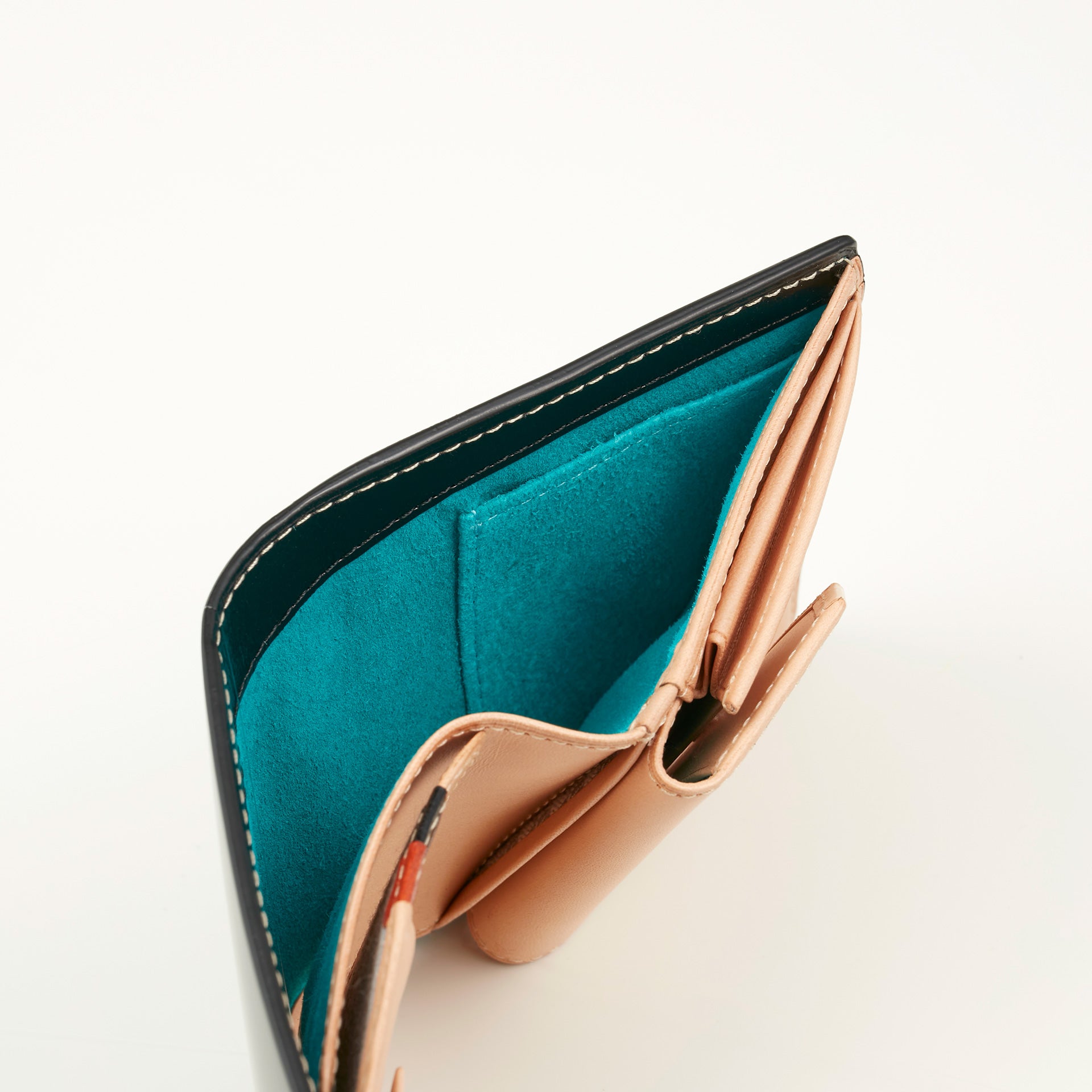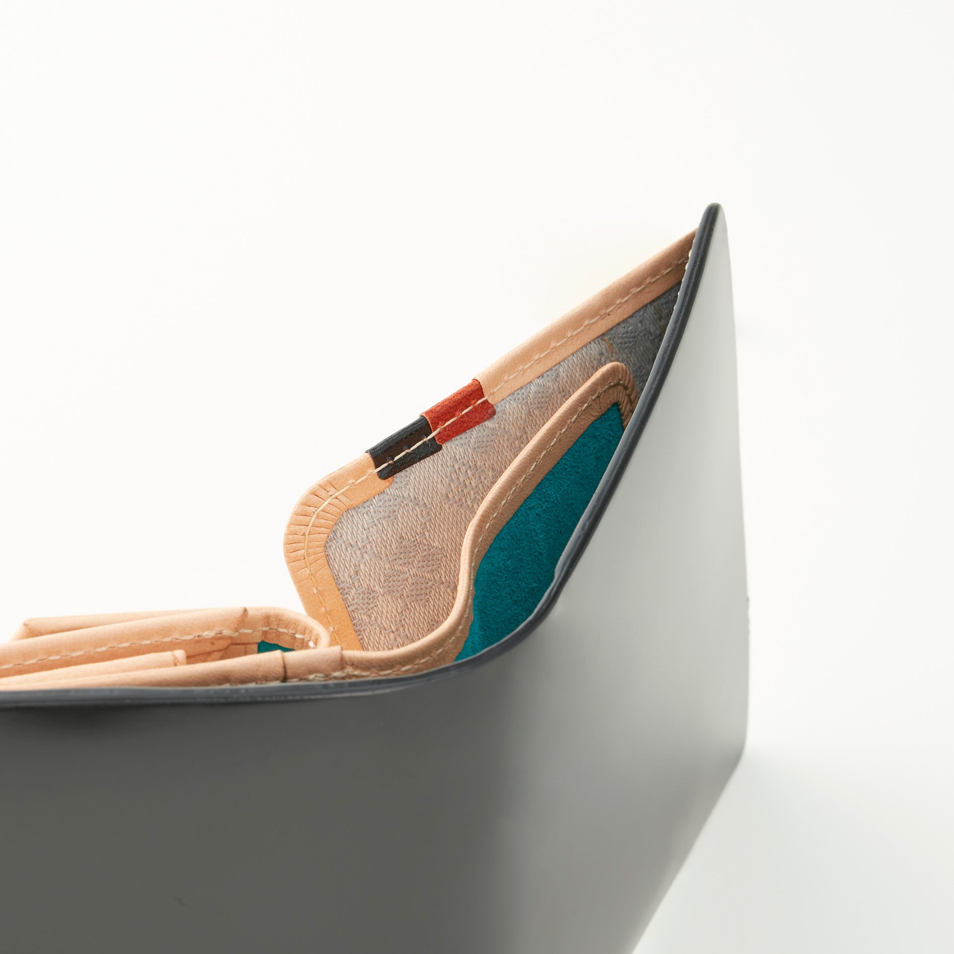 インナーを開くと一目瞭然美しい革の肌に加えて4色の革との配色が美しいラインにより一層アート性とお洒落感を醸し出しています。