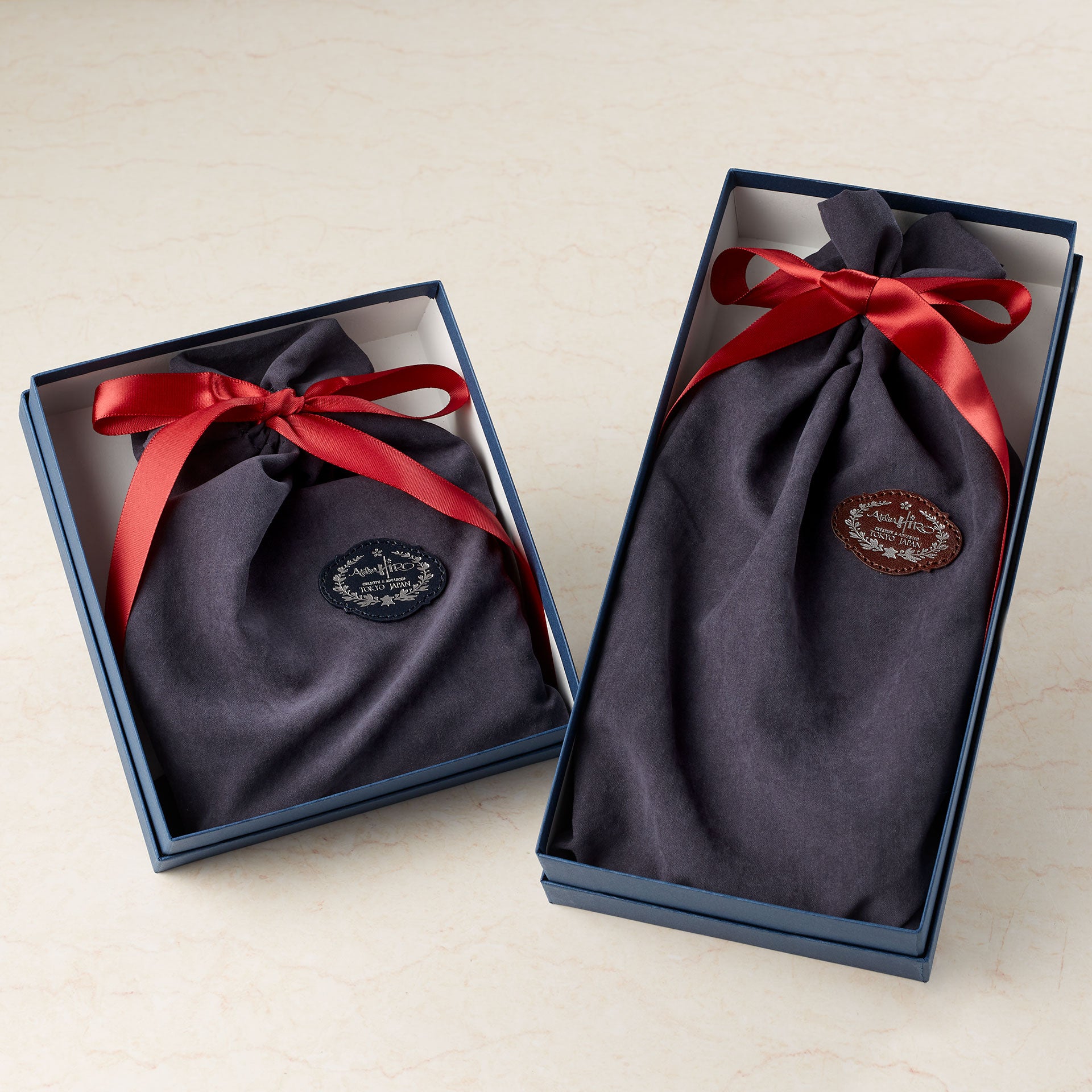 アトリエヒロオリジナルロゴをシルバー箔にてエンボス、ITALYのPuccini社のロゴマーク、そしてメッセージを直接見えないところにあえて遊び心を込めてメッセージをエンボスしました。